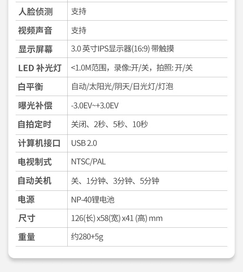 特殊功能: 笑脸快门 广角 长焦 微距 手动挡 高清摄像 触摸感应 可旋转 防水 防摔 防尘 防冻 支持外接闪光灯 支持GPS功能 支持RAW格式文件 无