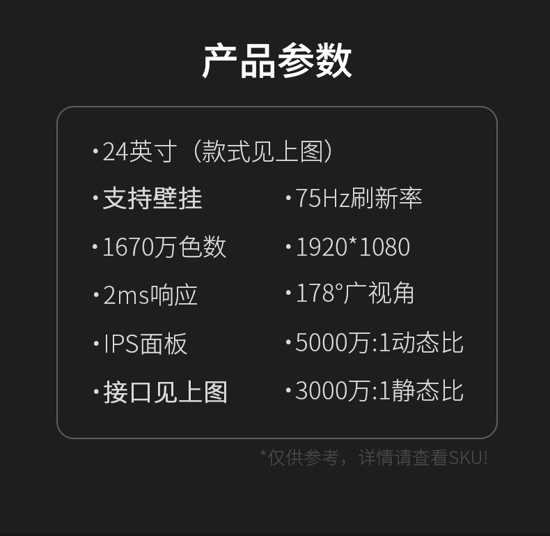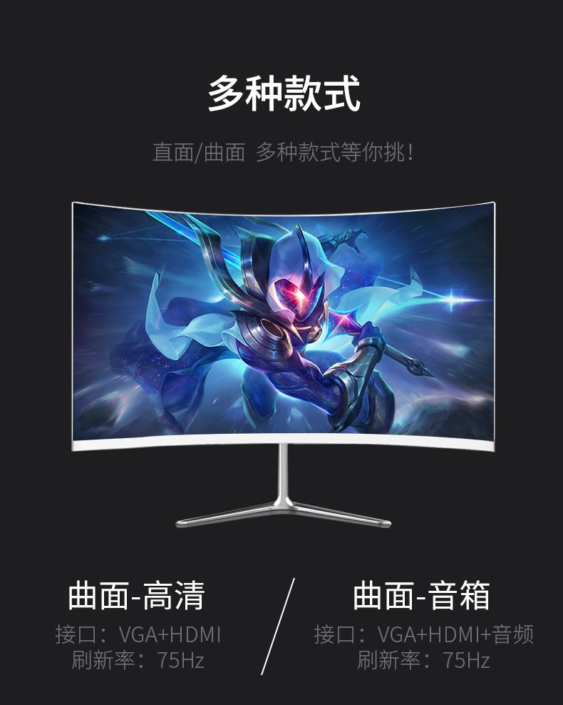 颜色分类: 20英寸直面【窄边+75hz】 22英寸直面【无边+75hz】 22英寸直面【内置音响+75hz】 24英寸直面【无边+75hz】 24英寸曲面【无边+75hz】 24英寸直面【内置音响+75hz】 24英寸曲面【内置音响+75hz】 27英寸直面【无边+75hz】 27英寸曲面【无边+75hz】 27英寸直面【内置音响+75hz】 27英寸曲面【内置音响+75hz】 32英寸直面【无边+75hz】