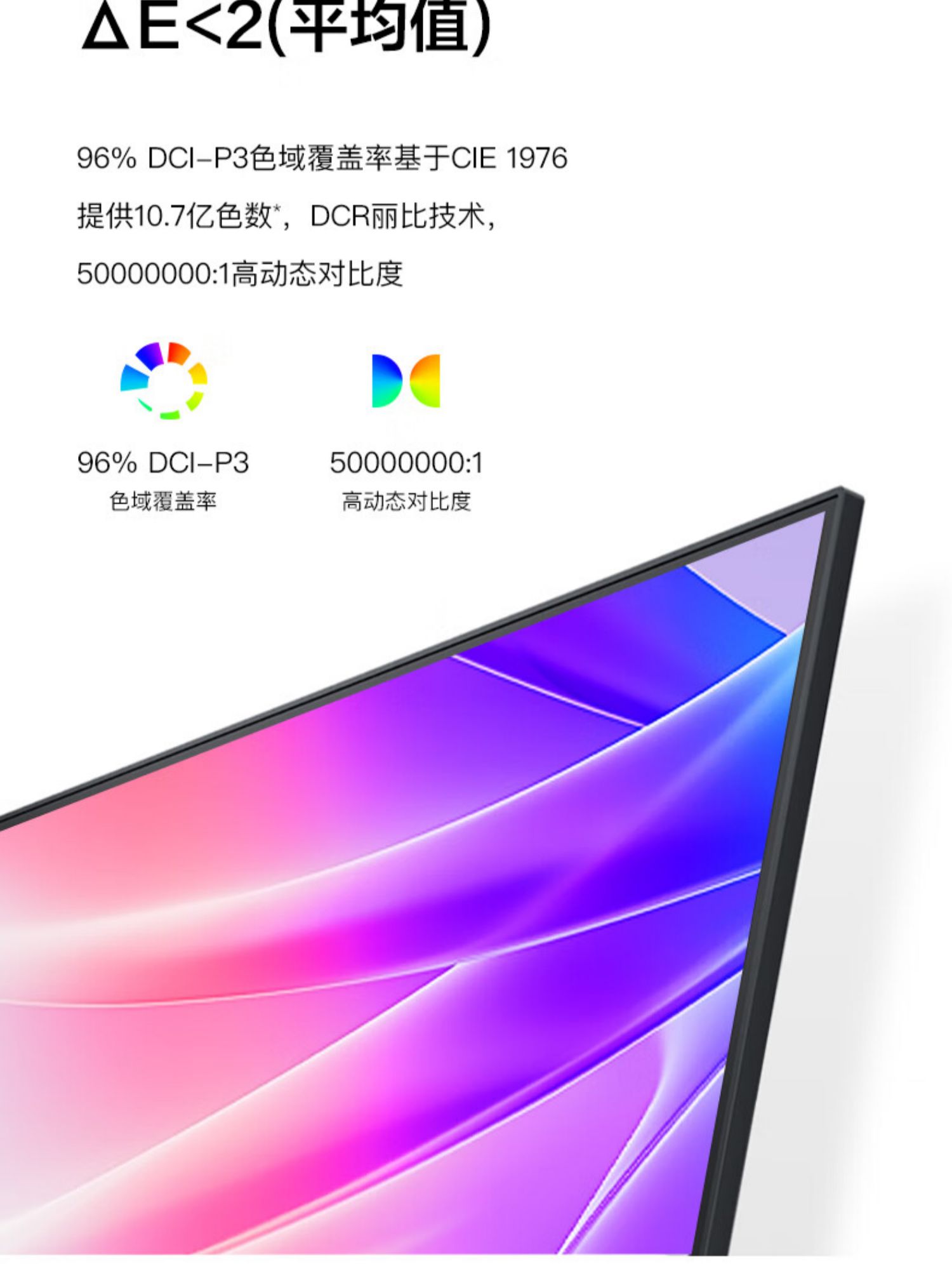 静态对比度:1000:1色差Delta E:≤2色域:DCI-P3≥95%