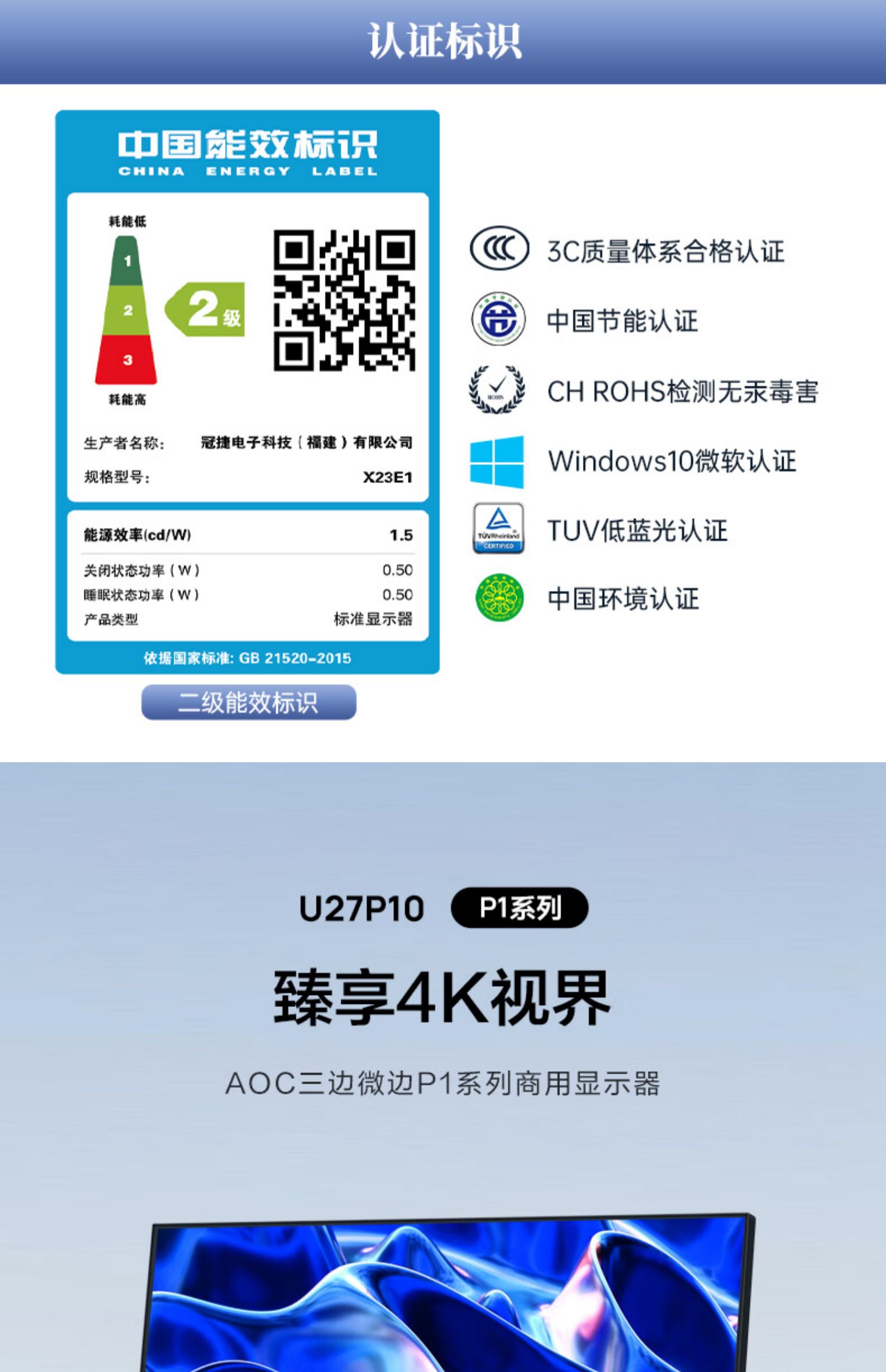 型号:U27P10品牌:AOC冠捷型号:U27P10